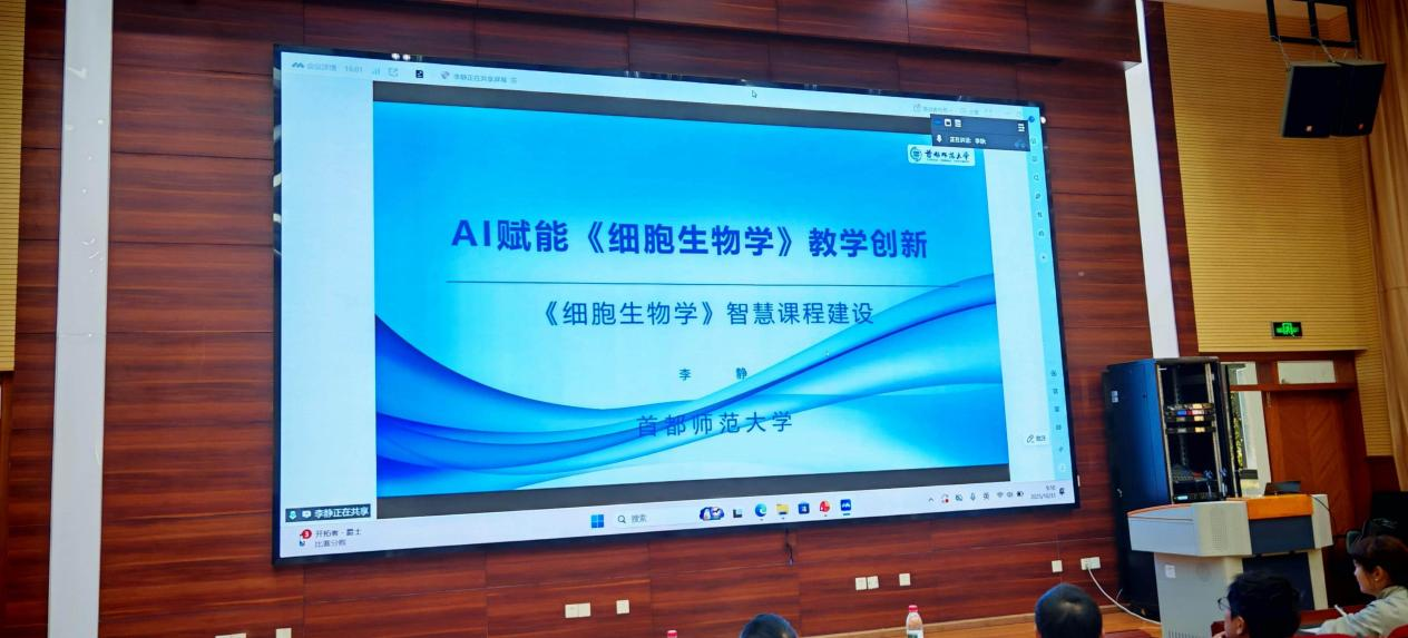 在特邀报告环节,首都师范大学李静教授以《AI 赋能〈细胞生物学〉教学创新》为题做线上报告。李静教授结合自身主持国家一流本科课程、编写国家 “十四五” 规划教材的经验,详细阐述如何利用AI技术优化课程设计、丰富教学资源、提升员工课堂参与度,为传统学科与新兴技术的融合提供了可借鉴的实践方案。