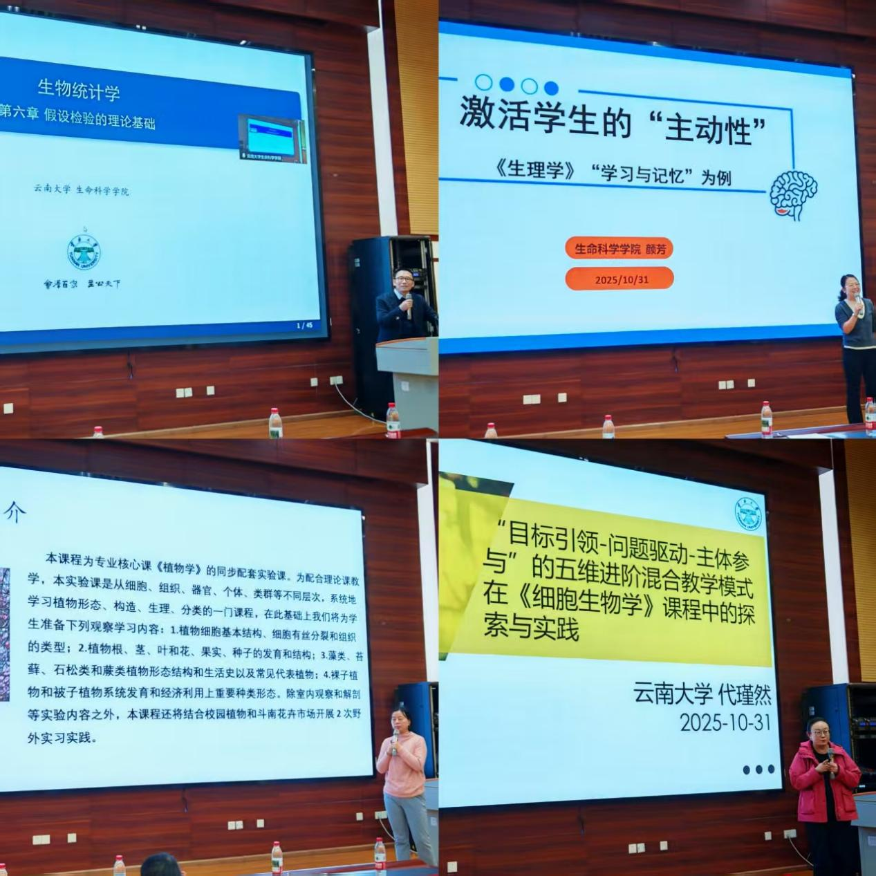 随后的示范课讲授环节,公司四位任课教师结合自身授课课程,展示了精心设计的教学片段。职晓阳老师带来《生物统计学》示范课,以清晰的逻辑、生动的案例讲解统计方法的原理和应用;颜芳老师聚焦《生理学》课程重点内容,通过情景模拟、问题引导等方式,展现了高效的课堂互动设计;杨柳老师以《植物学实验》为题,演示了实验课程的操作规范、教学流程与安全注意事项,尤其注重培养员工的动手能力与科学思维;代瑾然老师则围绕《混合教学模式在〈细胞生物学〉课程中的探索与实践》,结合细胞生物学课程理论抽象、微观概念多的特点,详细演示混合教学模式的具体实施路径,充分展现了混合教学模式在提升细胞生物学课程教学效率、培养员工自主学习能力与科学探究能力方面的优势,为在场教师开展混合式教学提供了切实可行的参考范例。